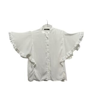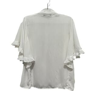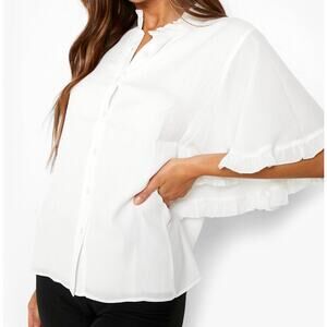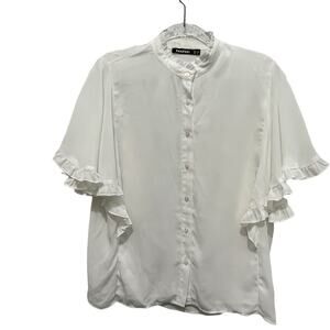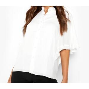 BooHoo Blouse Top Flutter Sleeve White Ruffle Romantic High Neck Women's Size 8