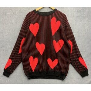 BooHoo Man Pullover Sweaters Mens All Over Valentine Day Hearts Striped Large