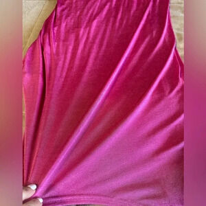 This is a gorgeous pink dress with a asymmetrical hemline and shimmery sheen. Lots of stretch. NWOT.