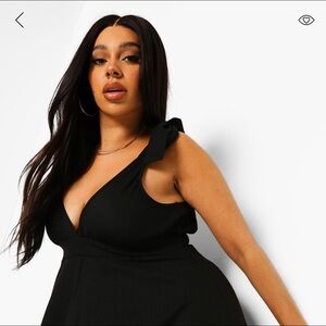 BooHoo Plus Curve Black Tie Detail Plunge Maxi Sun Dress NWOT sz 14