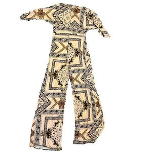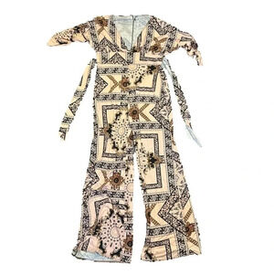 BooHoo Plus Slinky Chain Print Wide Leg Plunge Jumpsuit