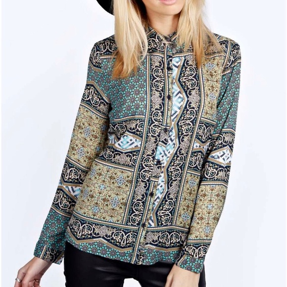 🚨⬇️BooHoo Rae Multicolor Button down Blouse