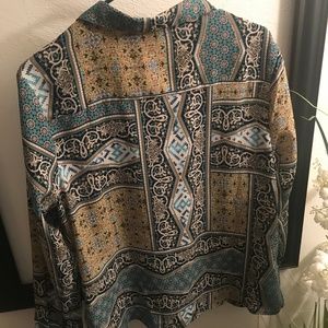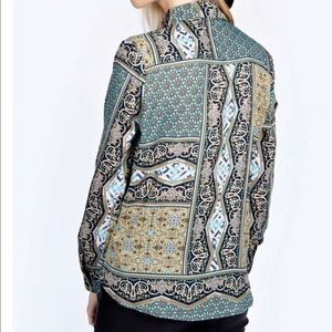 Blue/Green Tile print button down long sleeve is super soft, classy and lightweight
