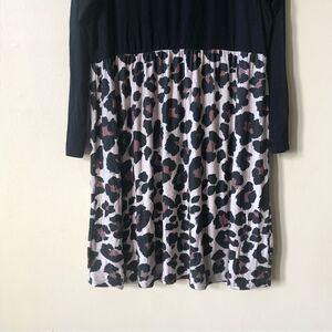 BooHoo Leopard Contrast Long Sleeve Smock Dress