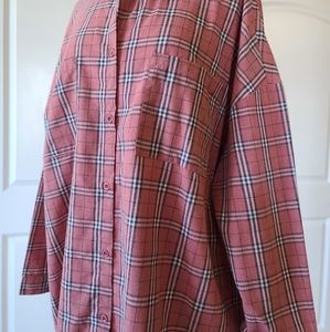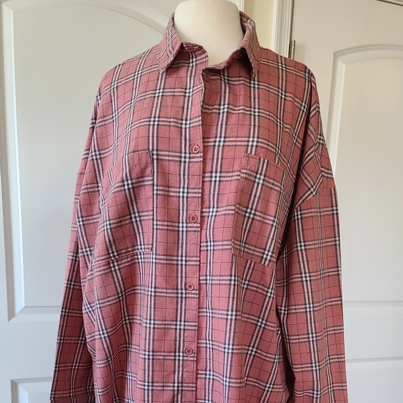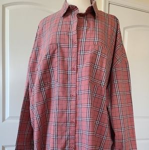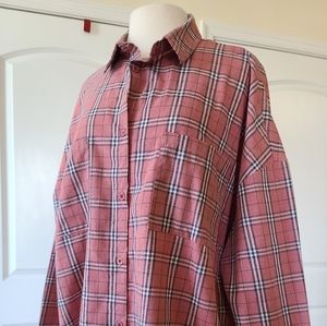 Boohoo plaid print button front overshirt