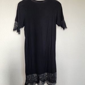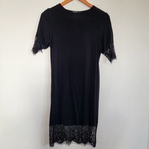 Boohoo Lace Trim T-shirt dress Eyelash lacing detail US size Small Black 95% Viscose 5% Elastane Imported