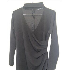 Boohoo Black Long Sleeve Faux Wrap Midi Dress – Size US 12