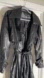 Elegant black trench coat with belted waist. Features classic collar and long sleeves. Perfect for any occasion.