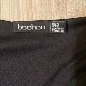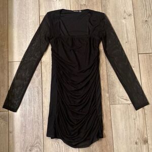 Boohoo Black W/ Sheer Sleeves Rouched Dress Size 12