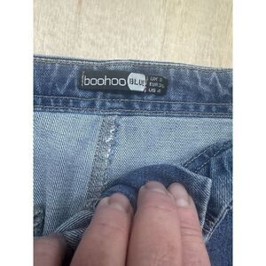 The blue color and wide-leg style add a touch of sophistication to your outfit, while the brand name Boohoo ensures quality and durability. Whether you're going out for a day with friends or running errands, these jeans will keep you comfortable and stylish all day long. Get your hands on these jeans now and take your fashion game to the next level!