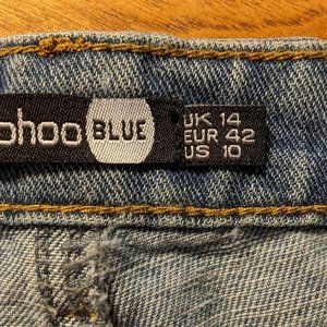 Boohoo Blue distressed, high rise, Jean shorts. Brand new with tags