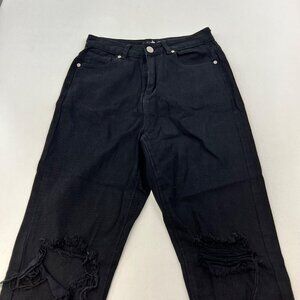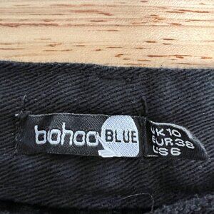 Boohoo Blue Womens Distressed Raw Hem Black Jeans Size 6 High Rise