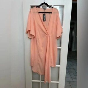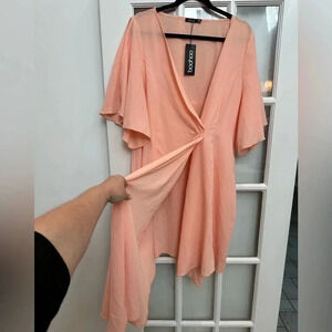 Boohoo | Blush Pink Sarah Wrap Woven Occassion Dress Plus Size 20 US NWT