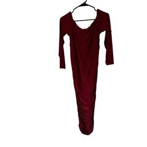 Boohoo Bodycon Dress Womens Size 12 Never Wore Ruched Sides Wine Color