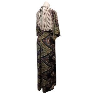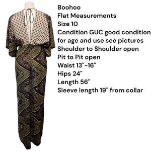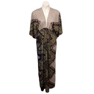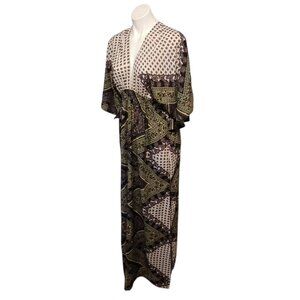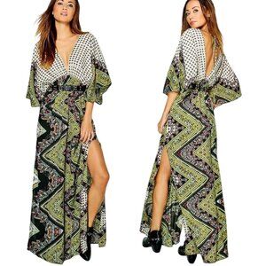 Boohoo Boho Kimono Dress With Slit Size 10 Neutral Colors Green Maxi
