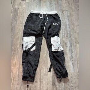 Boohoo Cargo Pants Black and Gray with Elastic Waist casual