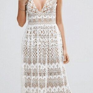 Boohoo Crochet White Lace Midi Dress – Size 6