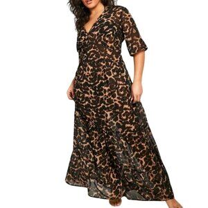Boohoo Dress Women 16 Brown Animal Print Sheer Safari Beach Resort Neutral 80s