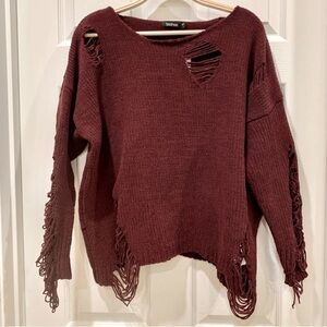 Boohoo Emma Maroon Distressed Chenille Jumper Sweater