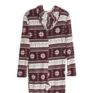 ๐บ Boohoo Fleece Burgundy Fair Isle One Piece Pajamas Size 4 Winter Snowflake