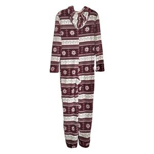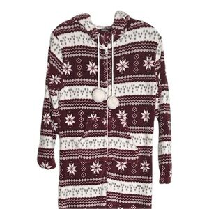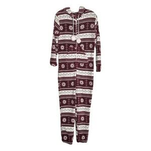 Boohoo Fleece Burgundy Fair Isle One Piece Pajamas Size 4 Winter Snowflake