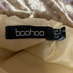 Boohoo Gold Metallic Velour Velvet Zip Up Collar Outdoor Puffer Jacket Coat 4