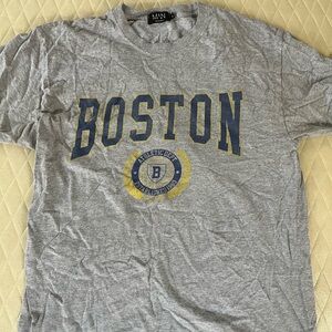 Casual gray tee with bold Boston print. Features athletic graphic design. Perfect for everyday wear.
