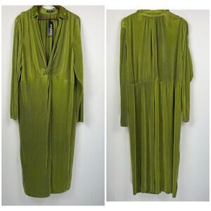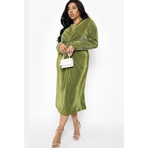 Boohoo Green 14 Pleated Twist Front Stretch Midi Dress Dolman Sleeve Look Party