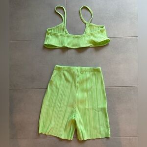 Stylish green pleated crop top and shorts set. Perfect for a casual day out.