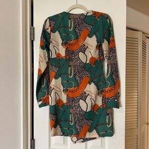 Boohoo - Green/Orange - Satin Chain Print Twist Shift Dress - UK 6/US 2 - NWT
