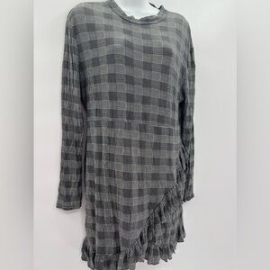 This Boohoo dress is a stunning piece featuring a grey and black checkered pattern. The detailed ruffles add a touch of elegance to the dress, making it perfect for any casual or semi-formal occasion. The dress is in great pre-owned condition, ensuring it will be a valuable addition to your wardrobe for a long time.