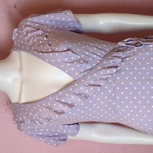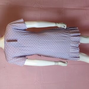 Boohoo Lilac Purple Polka Dot Ruffle Trim Short Sleeve Mini Dress size 10