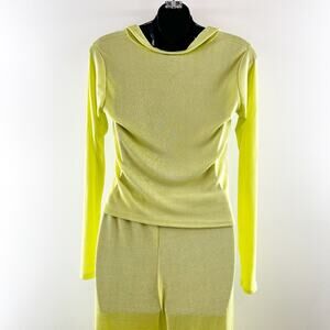 Boohoo Long Sleeve Button Up Shirt and Matching Wide Leg Pants Butter Yellow 8