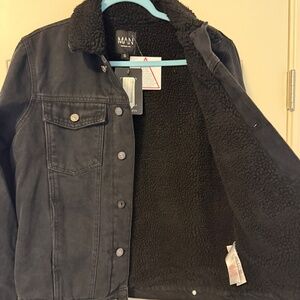 Boohoo MAN Men’s Fully Borg Lined Denim Jacket washed black Size S.