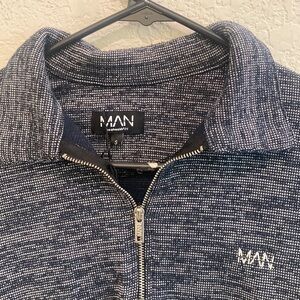 ▶️Boohoo Man◀️ 1/4 zipper black and grey distressed sweater NWT
