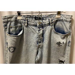 Boohoo Man Mens 36X30 Jeans Grahic Button Down Light Stone Wash