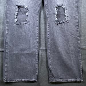 Boohoo Man Mens Jeans Black Button Fly Destroyed Bikercore 100% Cotton 36x33
