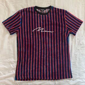 Boohoo Man NWT Blue Black Red Striped Shirt Med