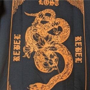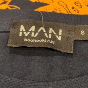 Boohoo Man Navy Blue and Orange Snake Back Graphic Short Sleeve Tee size Small