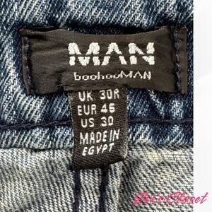 Boohoo Man Wide-Leg Jeans Blue Light Wash Vintage Style S 30