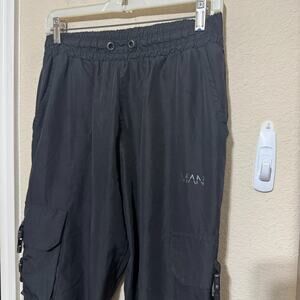Boohoo Man black Cargo joggers mens Small lightweight pull on parachute combat
