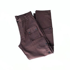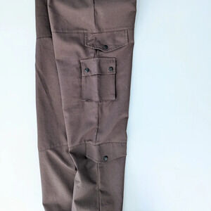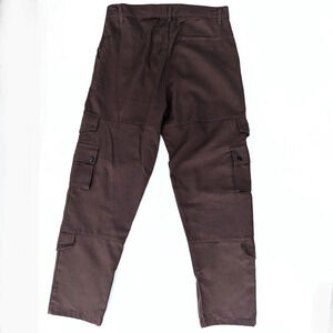 Boohoo Men size 34 chocolate brown, cargo, fixed waist relaxed fit, zip/button closure, multi pocket (7 Functional include 1 back pocket; 4 Faux) cargo pants with zip hem Gusset. 100% Cotton. Gently Loved. Excellent Condition! Like New!
