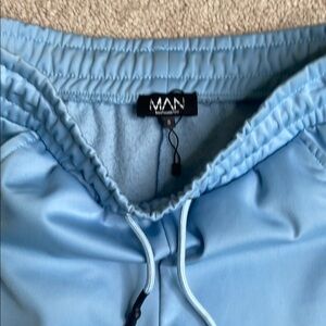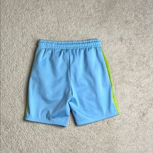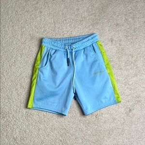 Stylish blue shorts with green side panels. Comfortable fit. Perfect for casual wear.