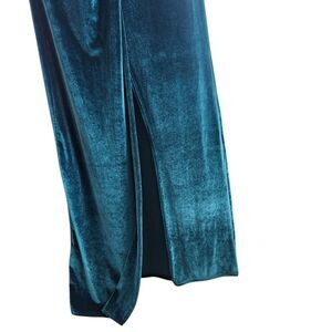Boohoo Metallic Teal Velvet Wrap Maxi Dress-10-Vneck-Glam-Holiday-Romantic-Goth