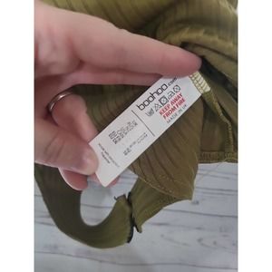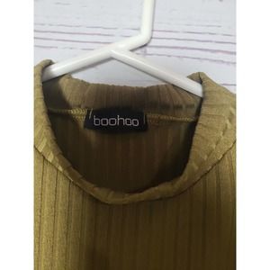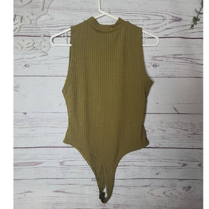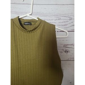 Boohoo Moss Green Ribbed Mock Neck Sleeveless Stretch Bodysuit Womans Size 8. Pre-owned