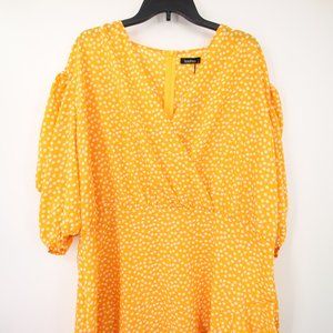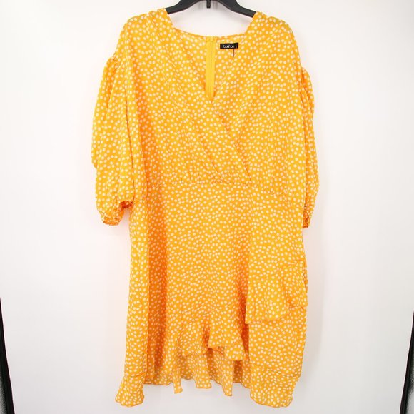 Boohoo Mustard Yellow Daisy Wrap Dress Size 18 New with Tags