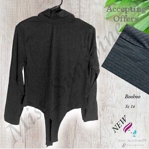 Boohoo NEW - Sz 16 plus size - Rib roll neck long sleeve bodysuit