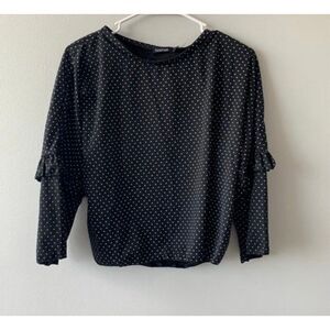 Boohoo NWT Women Black & White Chic Polka Dot Ruffle Sleeve Cropped Blouse Top