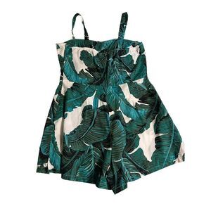 Boohoo Nasty Gal Romper Playsuit Green White 50s Style Palm Leaves Womens Sz L