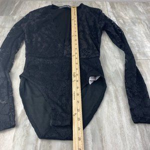 Boohoo Night V Neck Lace Bodysuit Leotard One Piece Long Sleeve Top Black Size 2